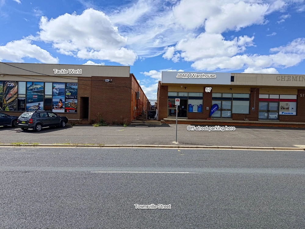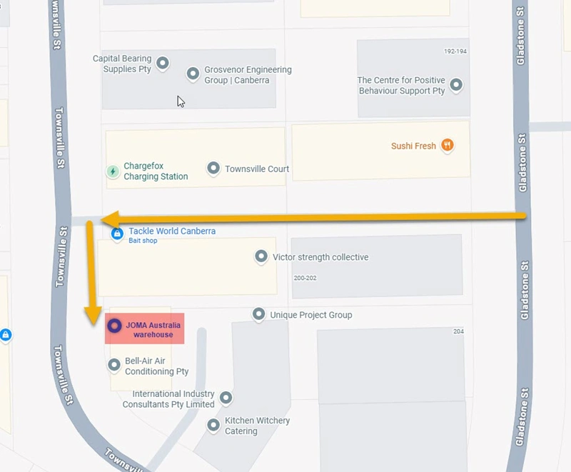 Townsville St may be blocked off this Saturday 28th March for pavement resurfacing. The warehouse can still be driven to using an access road from 196 Gladstone St shown below. You have the option of parking in the access road and taking a short walk to the warehouse, or driving and staying on the broad footpath/parking areas in front of the JOMA warehouse.